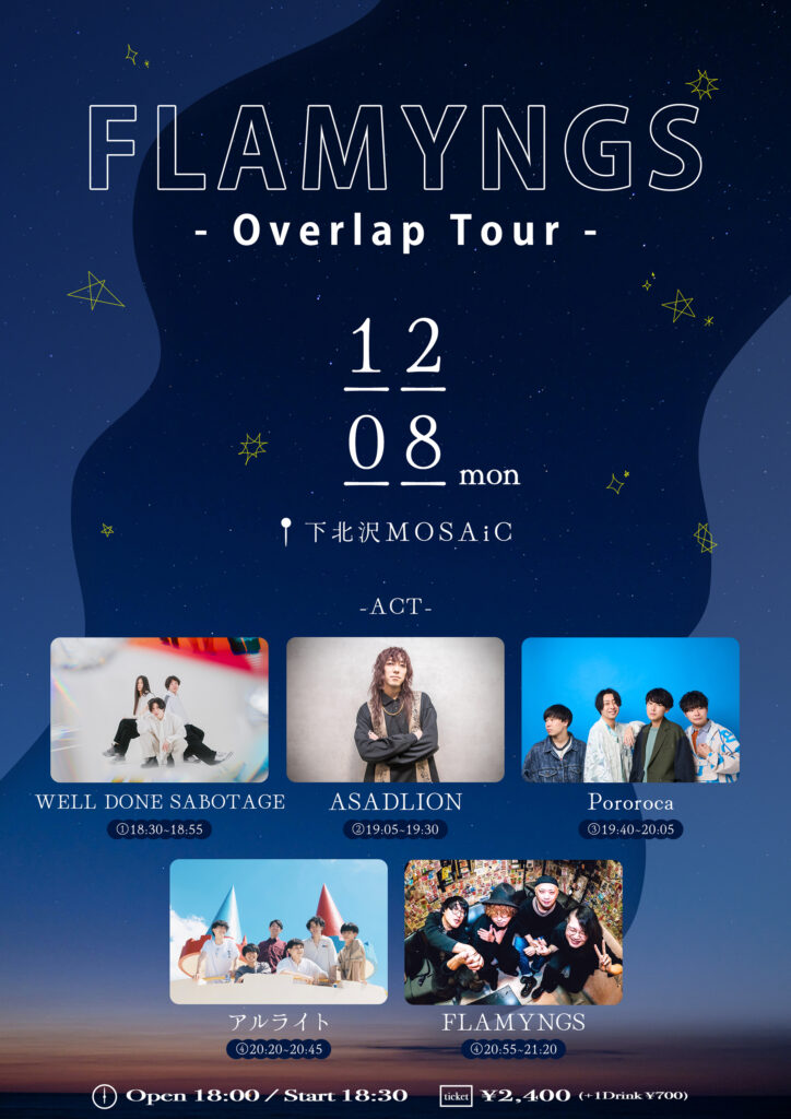FLAMYNGS / アルライト / Pororoca / WELL DONE SABOTAGE / ASADLION